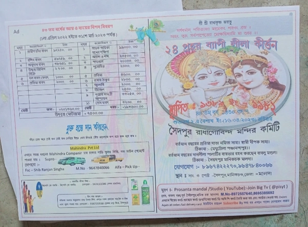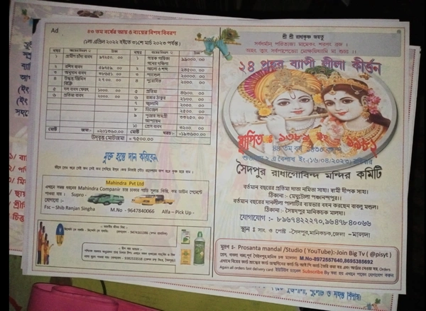 কীর্তনের বিজ্ঞাপন 3D A4 HD Quality 100 Pise Painting
